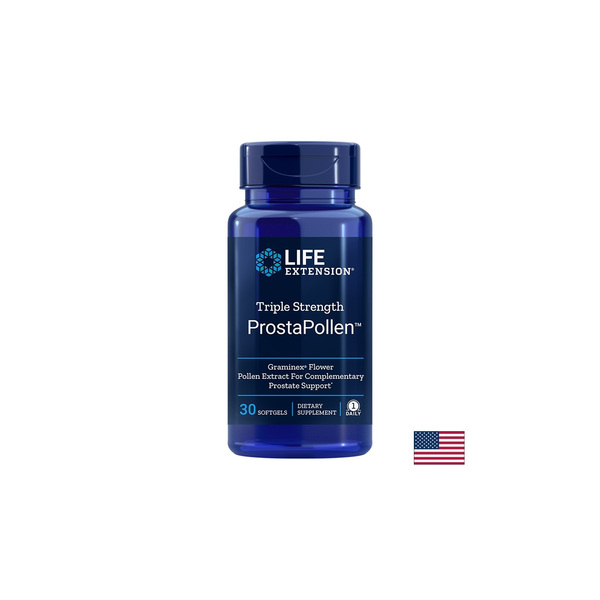 Triple Strength ProstaPollen™ е висококачествена хранителна добавка на Life Extension, предназначена за грижа за простатата. Всяка опаковка съдържа 30 софтгел капсули, които съдържат тройно концентриран екстракт от цветовете на ръж, наречен Graminex® Flower Pollen Extract™.