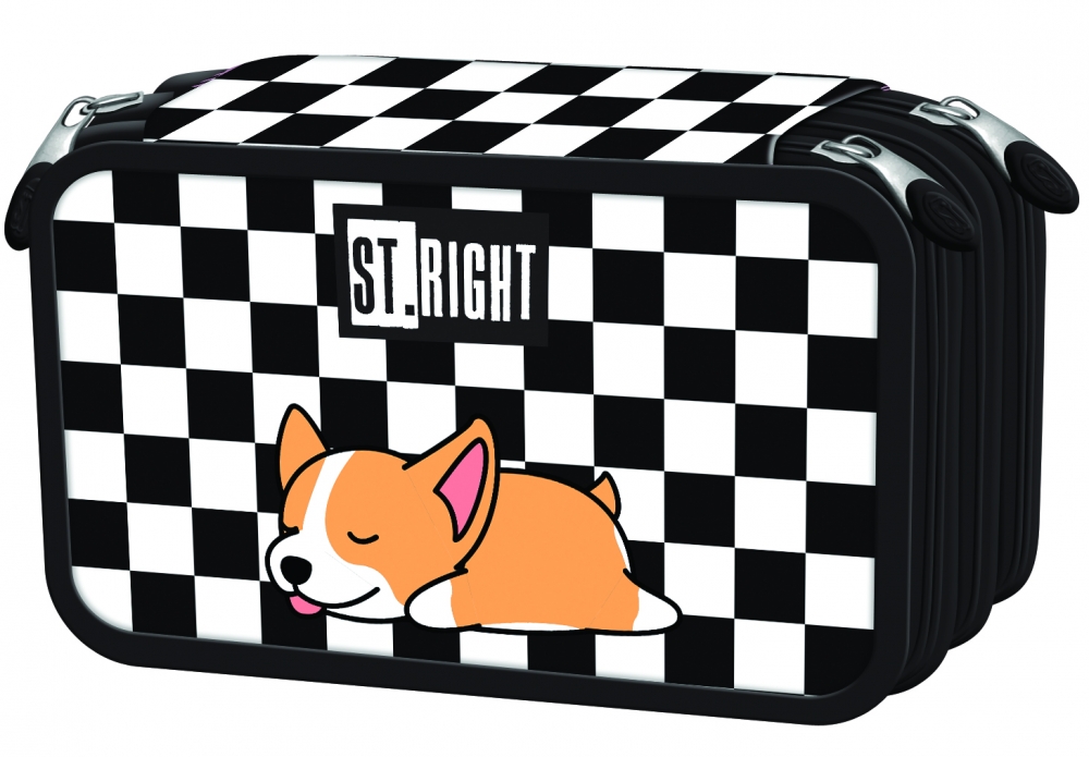 Троен несесер, St.Right, Спящо куче, С аксесоари, 20 x 13 x 7 см