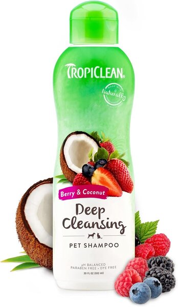 TropiClean Berry & Coconut Deep Cleansing Shampoo е мощен дълбоко почистващ шампоан за кучета и котки, който ефективно премахва и най-упоритите замърсявания и миризми.