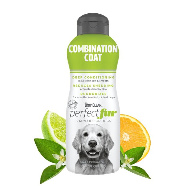 TropiClean PerfectFur Combination Coat Shampoo е иновативен шампоан за смесен тип козина, който предлага балансирана грижа, за да се справи и с двете предизвикателства едновременно – разплита дългите участъци и придава блясък на цялата козина.