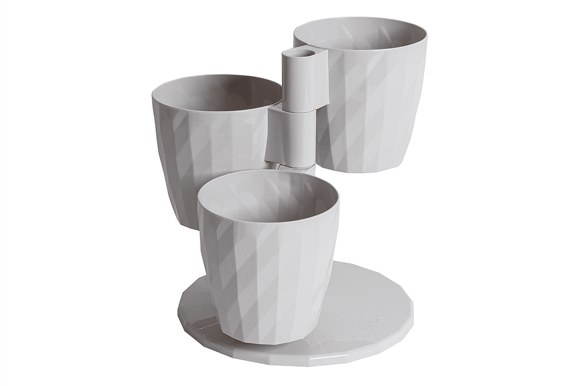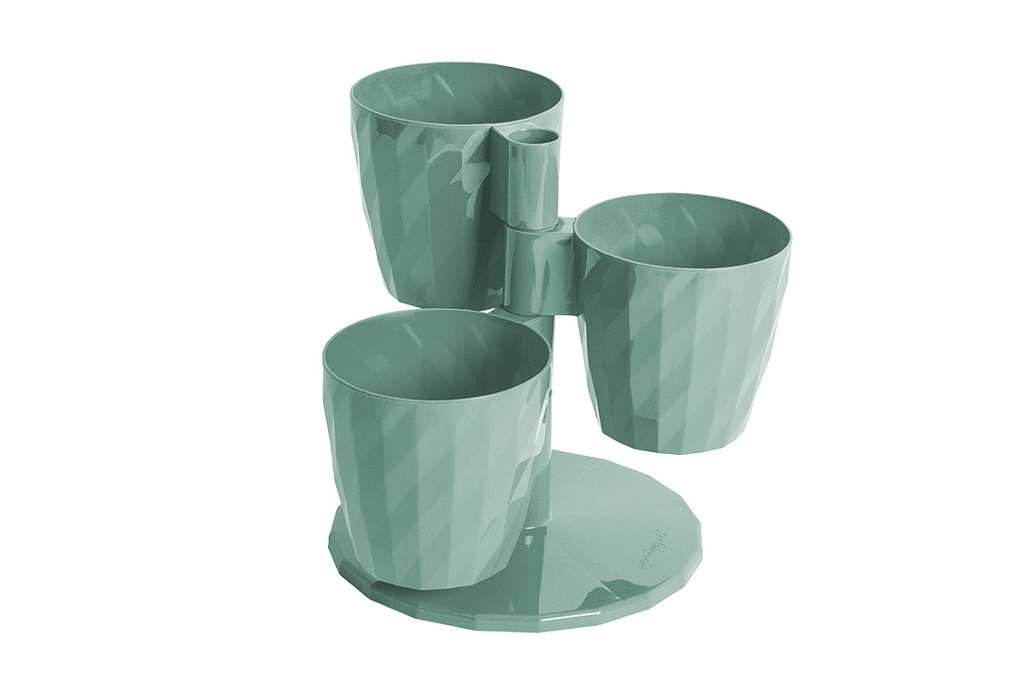 Саксия за цветя с три отделения. Изключително стабилна кръгла основа. Идеална за терасата и градината. Саксията може да се използва и като кашпа. Няма подложна чиния. Всяка сксия е с вместимост 1л.