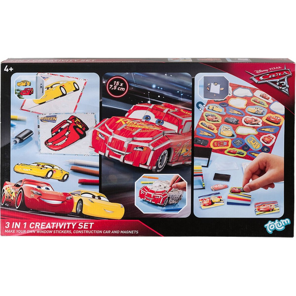 Творчески комплект, Totum, Cars 3, Картонен 3D модел, Рисунки и магнити 3 в 1
