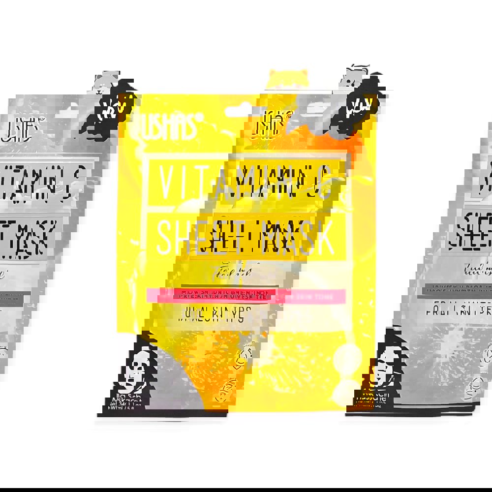 Ushas Vitamin C Sheet Mask е интензивна хидратираща маска, създадена да освежи, озари и изравни тена само за няколко минути. Обогатена с витамин C, тя подпомага регенерацията на кожата, засилва естественото сияние и намалява следи от умора и тъмни петна. Тънката и мека лист-маска прилепва плътно към лицето, като доставя концентрирани активни съставки директно в кожата. Перфектна за бързо съживяване на вида – преди грим, след уморителен ден или когато кожата има нужда от освежаване.