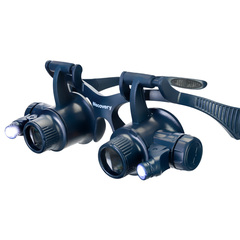 <p>Увеличителните очила Levenhuk Discovery Crafts DGL 60 са комплектовани с 8 двойки комплекти взаимозаменяеми лещи и две закрепващи приспособления за глава – текстилна лента за глава и рамка за очила. Това прави лупата идеална за работа с малки обекти, тъй като размерът може лесно да се регулира, за да отговаря на нуждите на всеки потребител. Тази лупа разполага с осветление, така че да можете да работите лесно дори в пълен мрак.</p> <p>Всички лещи са изработени от полимерно оптично стъкло. Що се отнася до яснотата и разделителната способност на представеното изображение, то по никакъв начин не отстъпва на стандартното стъкло, а дори е по-здраво и по-устойчиво на повреди. Този модел ще бъде добър избор за всеки, чиято дейност включва ремонт на малки механизми, оценка на бижута, откриване на дефекти върху различни повърхности и много други. Вкъщи той също така може да бъде от полза за всякакво хоби, свързано с дизайн и конструиране – като например моделиране.</p> <p>Осветлението се захранва с батерии.</p> <p><strong>Основни характеристики:</strong></p> <ul> <li>Бинокулярна лупа за деликатна занаятчийска дейност</li> <li>8 възможни увеличения, лещите са изработени от полимерно оптично стъкло</li> <li>Вградени светодиоди с регулируем ъгъл</li> <li>Осветлението се захранва с батерии</li> </ul> <p><strong>Комплектът включва:</strong></p> <ul> <li>Увеличителни очила </li> <li>Взаимозаменяеми лещи – 16 бр. (8 комплекта по 2 лещи)</li> <li>Текстилна лента за глава</li> <li>Ръководство за потребителя и гаранционна карта</li> </ul><table><tbody><tr><td>Марка</td><td>Discovery</td></tr><tr><td>Гаранция</td><td>10 години</td></tr><tr><td>EAN</td><td>5905555002811</td></tr><tr><td>Размер на опаковката (Д x Ш x В)</td><td>15x13x8 cm</td></tr><tr><td>Транспортно тегло</td><td>0.28 kg</td></tr><tr><td>Материал на оптиката</td><td>оптично полимерно стъкло</td></tr><tr><td>Диаметър на лещата (размери), mm</td><td>21 (16 бр.)</td></tr><tr><td>Диапазон на диаметъра</td><td>до 50 mm</td></tr><tr><td>Увеличение, x</td><td>2.5/4/6/8/10/15/20/25</td></tr><tr><td>Тяло</td><td>пластмаса</td></tr><tr><td>Налично е осветление</td><td>yes</td></tr><tr><td>Осветление</td><td>светодиодно</td></tr><tr><td>Захранване</td><td>6 бр. батерии LR1130 (не са включени)</td></tr><tr><td>Приложение</td><td>за ремонт на часовници/бижутерия</td></tr><tr><td>Конструкция</td><td>рамка за очила</td></tr><tr><td>Допълнително</td><td>взаимозаменяеми лещи, 2 светодиода</td></tr></tbody></table>