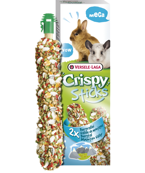 2 бр. Mega Sticks Rabbits-Chinchillas Mountain valley 2 х 70гр - мега стик за зайци и чинчили с вкус на планинска долина. Обогатени с витамини, аминокиселини и минерали. Лакомство, което разнообразява менюто и спомага за жизнеността.
