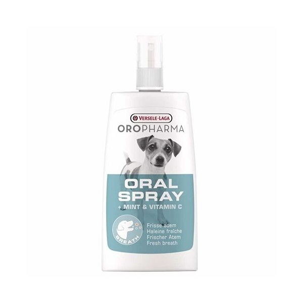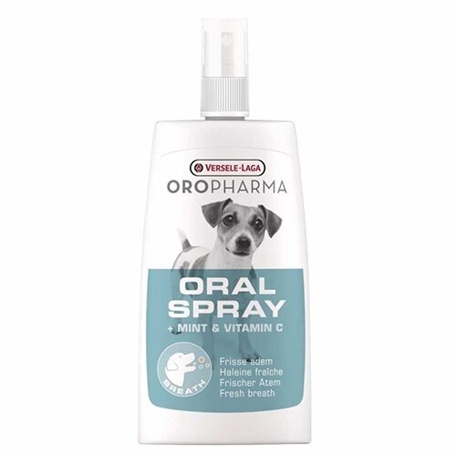 Versele-Laga Oropharma Oral Spray е ефективен устен спрей за кучета и котки, който комбинира ментолова освежаваща формула и витамин C за свеж дъх, регулация на плаката и зъбен камък, както и поддръжка на венците и устната хигиена.