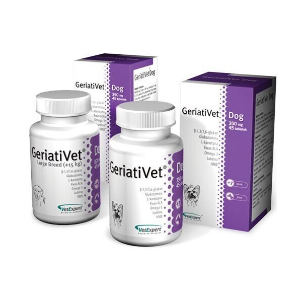 Vet Expert GeriatiVet Dog Large Breed е комплексна хранителна добавка, специално създадена да отговори на нуждите на възрастните кучета от едри породи. С напредването на възрастта, техният организъм се нуждае от целенасочена подкрепа, за да се намали рискът от здравословни проблеми и да се запази високо качество на живот.