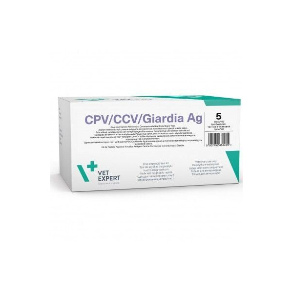 Vetexpert Rapid CPV/CCV/Giardia Ag Test е хроматографски имуноанализ за качествено откриване на парвовирусен антиген, коронавирусен антиген и антиген на Giardia в изпражненията на кучета. Тези три патогена са честа причина за инфекциозна диария при кучета.