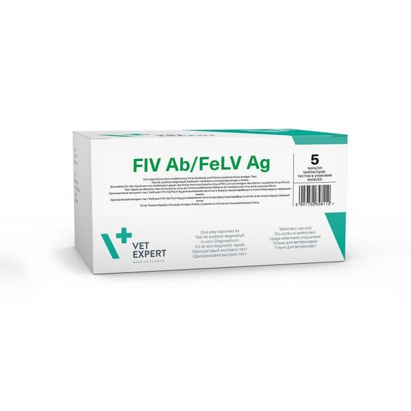 Бързият тест VetExpert FIV Ab / FeLV Ag е имунохроматографски тест за качествено откриване на антитела срещу вируса на котешкия имунодефицит и антигена на вируса на котешката левкемия.