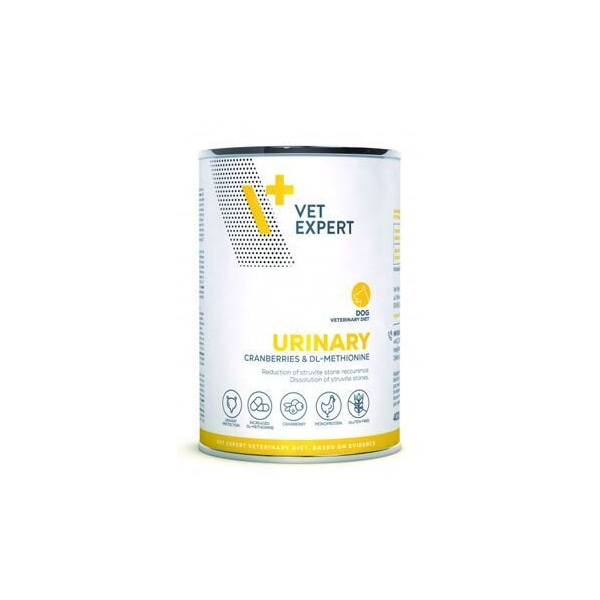 Пълноценна и балансирана диетична храна за кучета, предназначена да помогне при проблеми в пикочните пътища: пикочния мехур и пикочните пътища. Диетата Urinary dog намалява образуването на струвитни кристали и камъни (магнезиев амониев фосфат).