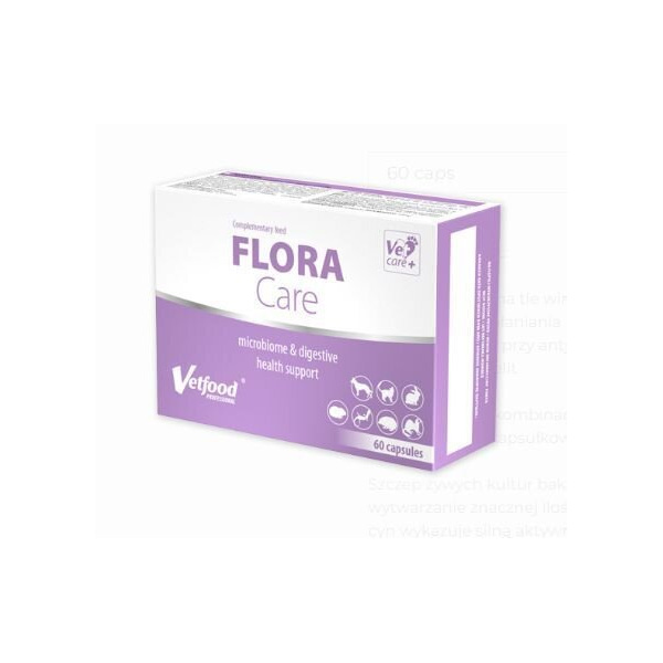 FLORA CARE е комбинация от пробиотични бактерии ( Enterococcus faecium ), микрокапсулиран натриев бутират и FOS.