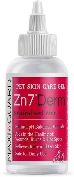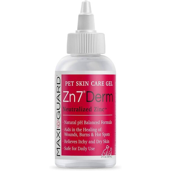 Препаратът съдържа естествен неутрализиран цинк, който успокоява сърбежа и сухата кожа. MAXI/GUARD® Zn7® Derm не съдържа стероиди, алкохол, антибиотици или други вредни вещества, които могат да застрашат благосъстоянието на кожата на животното.