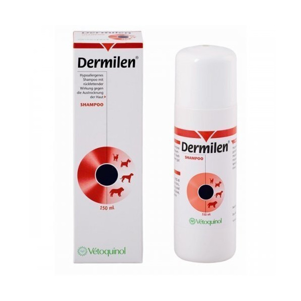 Dermilen е хипоалергенен шампоан за кучета и котки, разработен за чувствителна, суха или алергична кожа. Нежната му формула почиства без изсушаване и поддържа естествения защитен баланс на кожата.