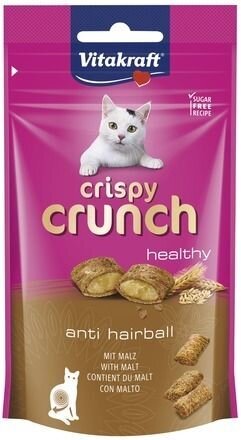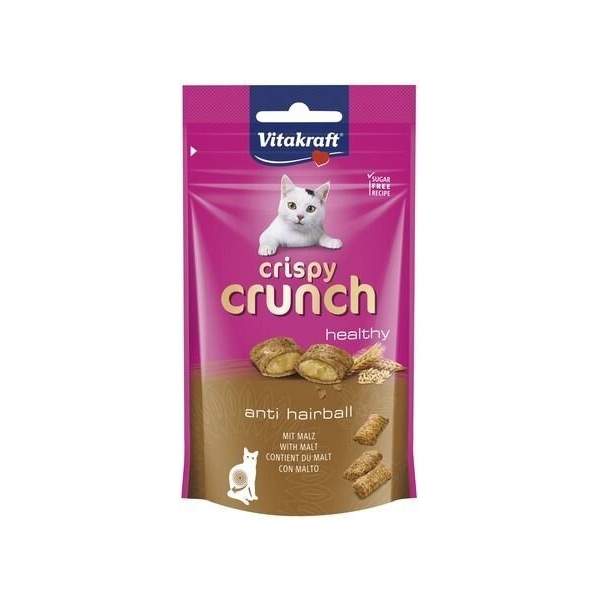 Допълваща храна за котки. Хрускащо лакомство за котки за предотвратяване образуването на топки косми. Пълнеж от крем, с малц.