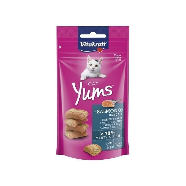 Допълваща храна за котки - сочни хапки за коте с крехка сьомга, Омега 3 и изключително високо месно съдържание.