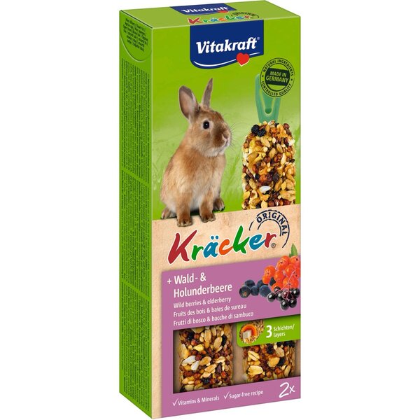Крекерът „Горски плодове и плод от бъз“ е едновременно здравословна храна с много витамини, предпочитано лакомство и забавление за вашия любимец. Трислойно изпечен върху дръвце за гризане. Животното само работи за храната си, както в природата.