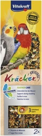 Настоящият крекер например съдържа витамини, минерали и една важна аминокиселина, която да подкрепи организма на птицата през периода на смяна на оперението.