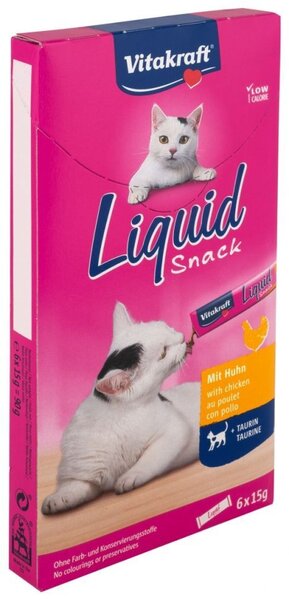 Течният снакс с пилешко и таурин е кремообразно, меко и приятно удоволствие, което всички котки обожават. Допълнителна храна за домашни любимци, подходяща за котки над 3 месеца.
