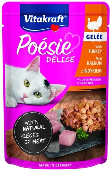 Пълноценна храна за пораснали котки. Рецепта без захар, без зърнени култури, без изкуствени оцветители и консерванти.