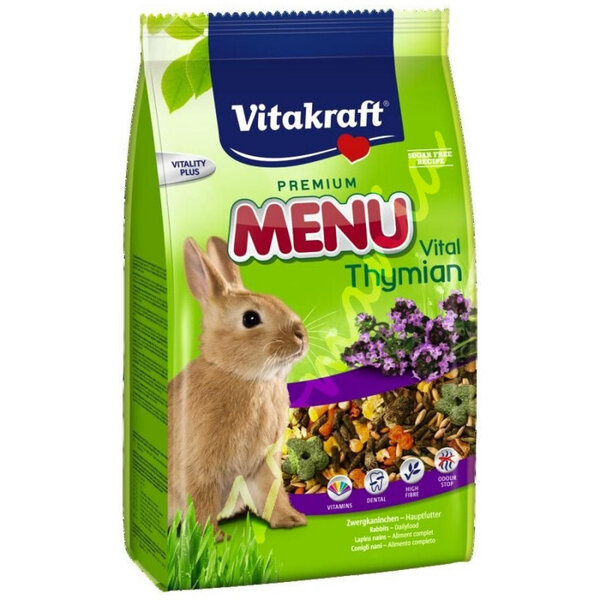 * VITA® HERBS: внимателно селектиран микс от ценни билки като мащерка, мента, листа от хибискус и лайка, които подпомагат доброто общо състояние на зайците.