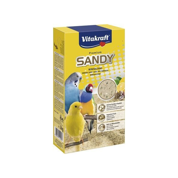 Premium Sandy е идеална основа за един чист и хигиеничен птичи дом, който чрез морските раковини и варовик предлага на пернатите също така ценни минерални вещества и микроелементи за един живот в добро здраве. Съдържа приспособление за поръсване, за по-лесна употреба.