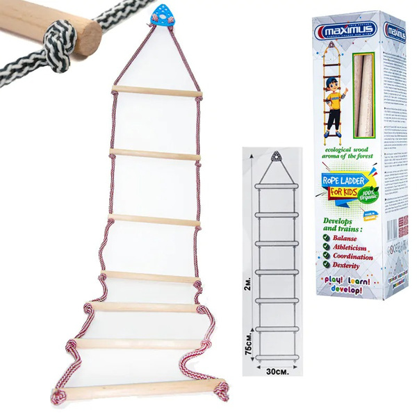 Въжената стълба е предназначена за физическото развитие на детето, упражненията подобряват сръчноста, координацията, баланса и развиват мускулатурата на детето.