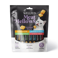 Mеки месни хапки за котка Wellfed Meat Mellows Mix Tastes предлага гама от вкусове, осигуряващи разнообразие, на което вашата котка да се наслади.