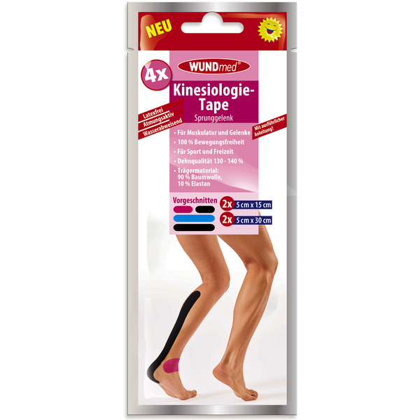 Wundmed Кинезиологочна лента глезен - щадяща кожата и много адаптивна и разтеглива благодарение на вълнообразната S-образна структура и хипоалергенното акрилно лепило. Перфектна адаптация към човешкото тяло като кожа, мускули, кости и др. Лентата е много устойчива на разкъсване и разтеглива, което я прави идеална за спортисти.