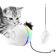 Двуцветен дизайн, топката може да се превключва на червена светлина и RGB променяща се светлина и да привлича вниманието на вашите котенца, докато се търкалят бързо. USB акумулаторен дизайн, няма нужда да харчите пари за закупуване на батерии, 1,5 часа зареждане може да осигури до 4 часа забавление и упражнения за вашето коте. Спестете парите си и по-щадящи околната среда.