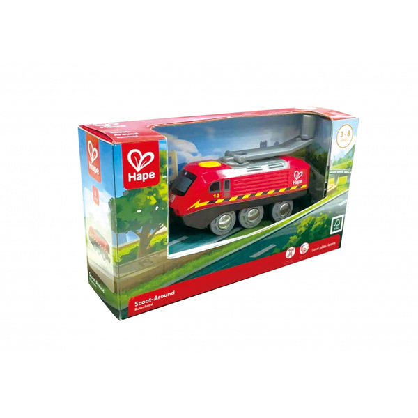 Захранващ енергиен влак с манивела и USB, Hape, Червен