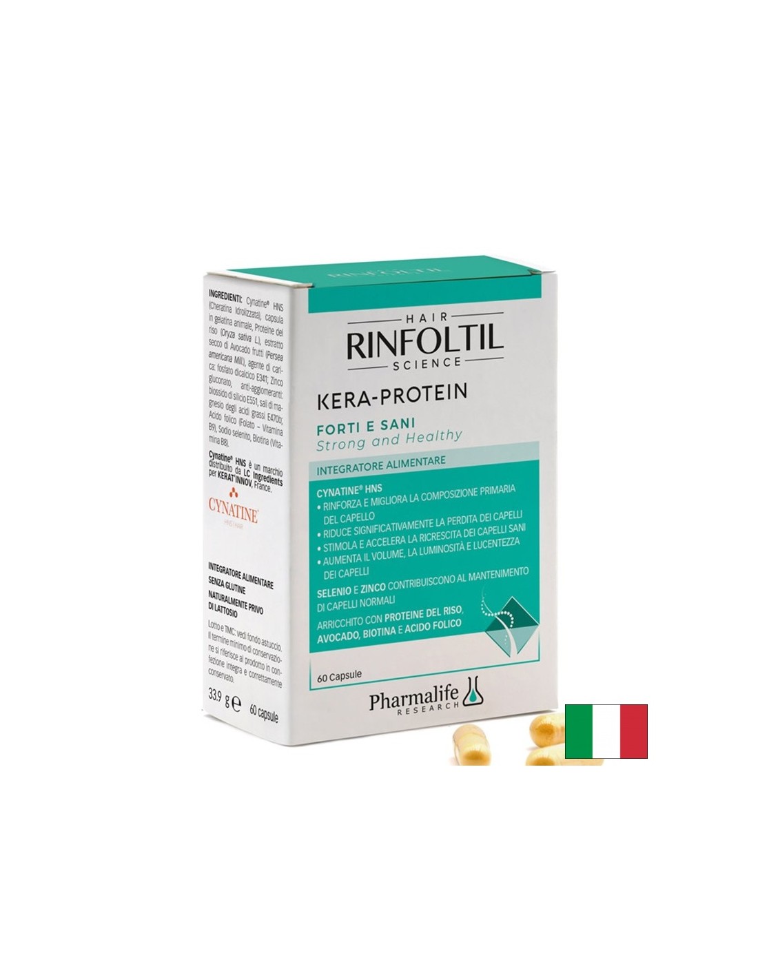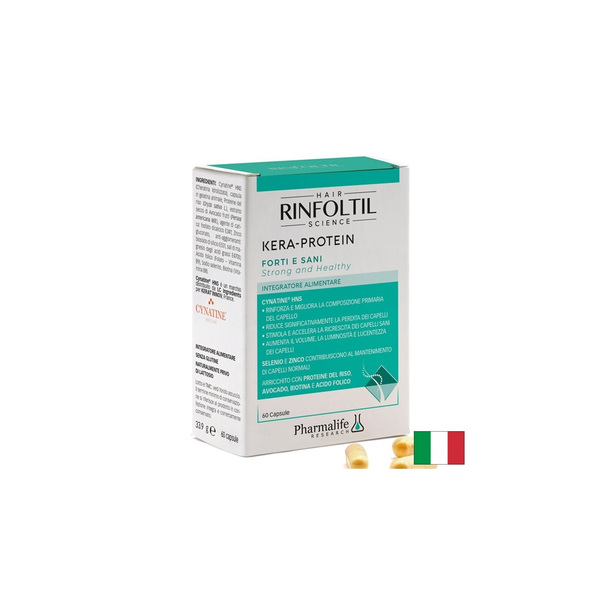 Ринфолтил Кера-Протеин на италианската компания Pharmalife Research е с насочено действие върху структурата и физиологичната функция на косата и космените фоликули. Формулата е създадена на базата на клинично валидирани активни съставки и нутриенти с ключова роля за кератиновия метаболизъм и здравето на кожните придатъци. Компонентите действат на клетъчно ниво, подпомагайки възстановяването на структурните протеини в косъма, намаляване на косопада и стимулирането на анагенната фаза на растеж.