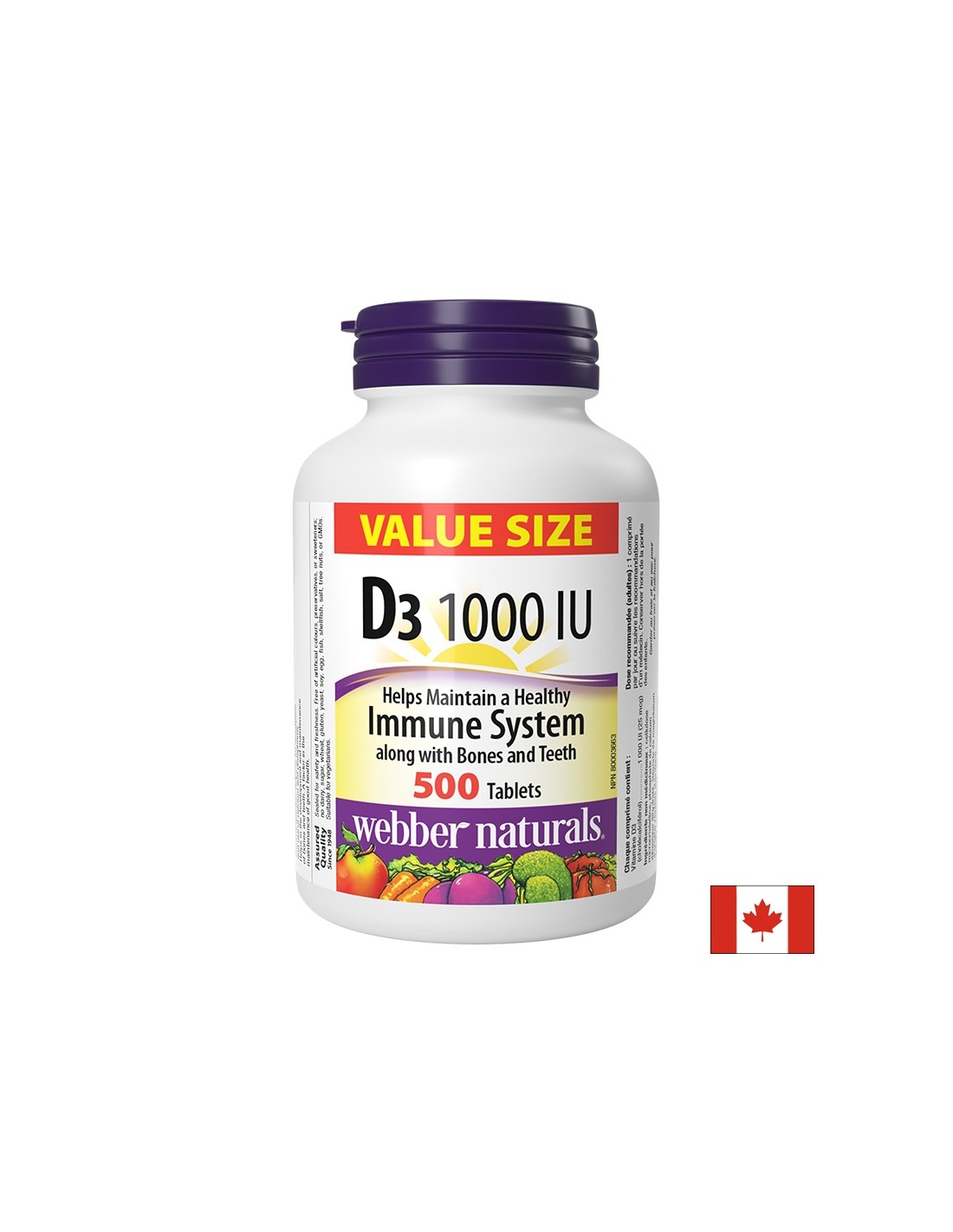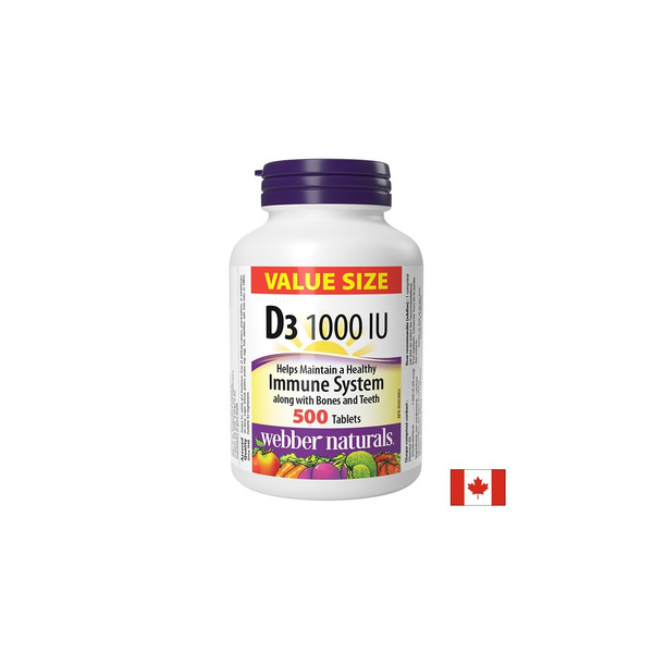 Витамин D3 1000 IU на канадската компания Webber Naturals е естествен продукт, лесно усвоим от организма в подкрепа на костите, зъбите и сърдечно-съдовата система.