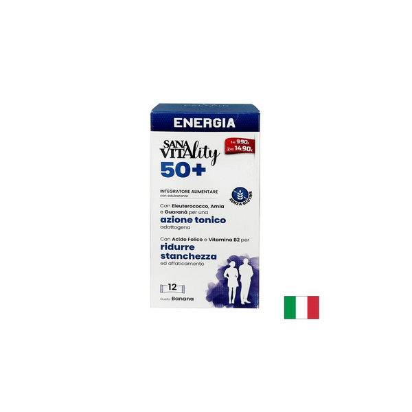 SanaVitality Enegia 50+ / Жизненост и енергия 50+, 12 сашета с течност х 10 ml е хранителна добавка на Paladin Pharma, Италия.