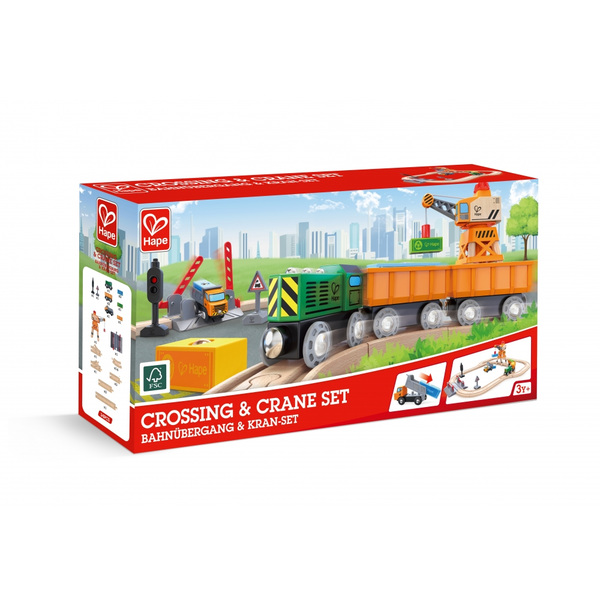 Дървен железопътен комплект, Hape, Товарен влак с кран